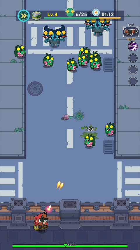 進入這款類似僵尸題材的游戲后,一旦僵尸進入角色的攻擊范圍,角色便會自動發起攻擊。