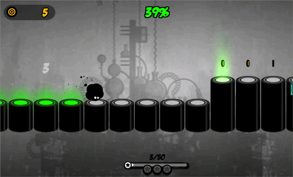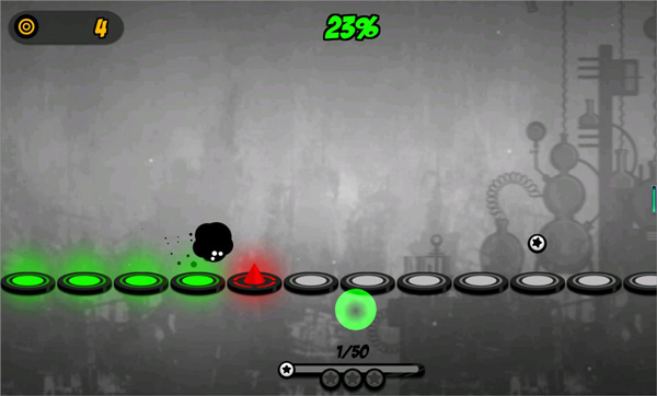 控制你的小黑球持續跳躍,避開那些障礙物之類的東西,一直抵達終點。