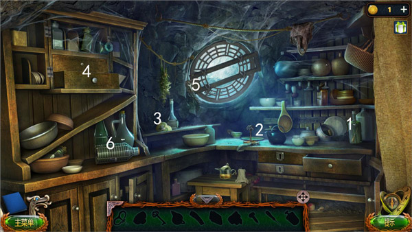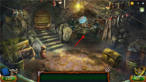 進入里面后,點擊1處,砸碎瓶子就能獲得鑿子,與此同時,點擊左側可以拿到火柴盒。
