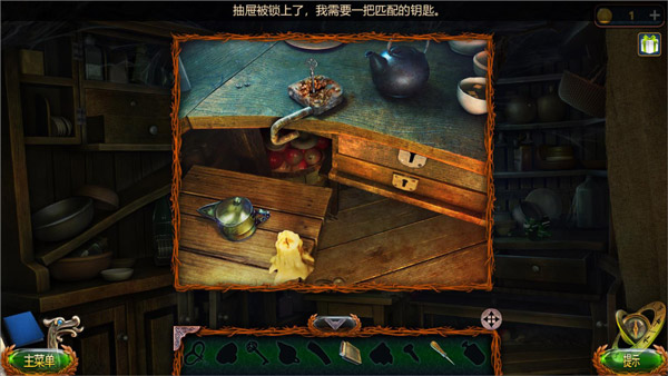 把鑰匙用到2處右下角的抽屜上,抽屜就會打開;接著將手柄用于抽屜里的刀片,再用螺釘進行操作,就能得到小刀,至此小游戲完成。