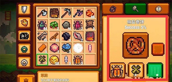 椒鹽卷餅的合成材料為蜜糖蟲與草藥,合成成功率達55%。其中,蜜糖蟲需通過圣甲蟲和紅膠合成;草藥則可在草原副本里,通過挖掘蘿卜葉或消滅軟糖怪來獲取。
