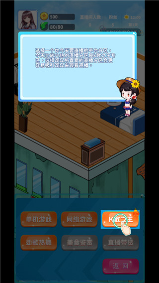 經紀公司相關內容如下:其一為智商類學習項目,參與學習后能提升智商經驗與情商經驗;其二是消除黑粉,黑粉數量自然是越少越理想;其三是招聘經紀人,能力出眾的經紀人不僅可以降低平臺抽成比例,還能在你進行直播和學習活動時提供屬性加成(經紀人的屬性可通過消耗鉆石進行刷新調整)。