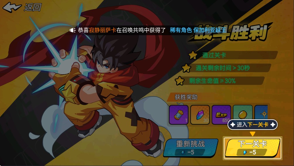 戰斗獲勝后不僅能得到豐厚獎勵,還能解鎖并進入下一個關卡。
