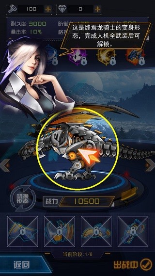 進入后,了解最新研發的機甲變身技術,點擊切換即可。