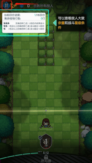 點擊游戲左上方圖示位置,即可查看剩余敵人數量與戰斗星級條件
