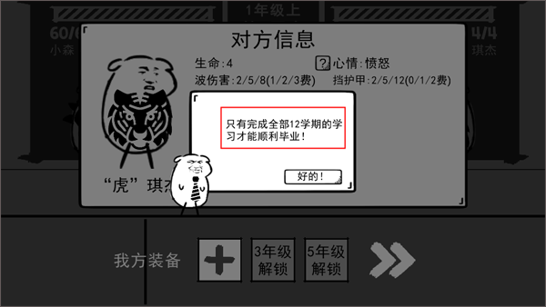 玩家在小學(xué)階段需要和對應(yīng)的老師或同學(xué)展開PK,只有把他們?nèi)繐魯〔拍苌?jí)學(xué)籍,而只有完成所有12個(gè)學(xué)期的挑戰(zhàn),才能順利從小學(xué)畢業(yè)。