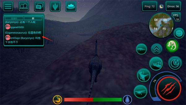 關于食物獲取:若你的恐龍是掠食性的,就得通過獵殺其他玩家的恐龍來獲取肉食;要是草食性恐龍,找食物會輕松些——你需要尋找特定的蕨類植物,而且能輕松收集到足夠的量。至于飲水,地圖上所有的湖泊和水庫都能滿足需求。