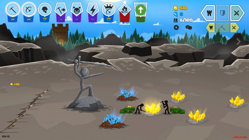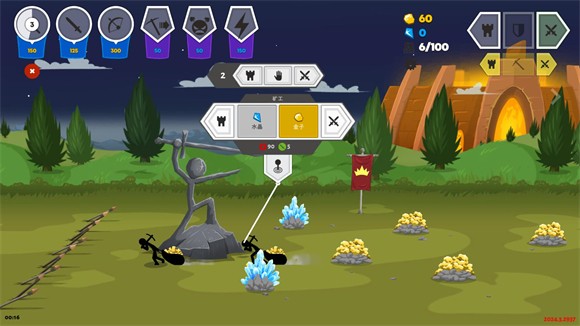 對戰時的資源需由礦工采集,點擊礦工就能給他們分配采集黃金或水晶的任務。