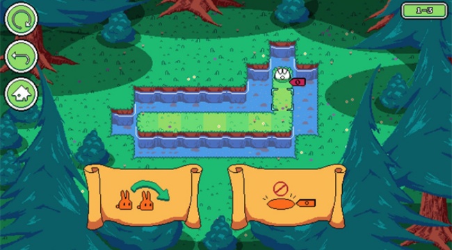 游戲的每一個關卡都設定了固定的可移動步數上限,玩家必須在這個限定的步數范圍內,把所有的兔子都成功引導至洞穴之中。