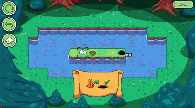 每一關你都得指揮一群兔子,讓它們互相踩著跳,最后都鉆進同一個洞里。但要注意,它們能跳的次數是有限的,所以每一步都得好好琢磨著來。