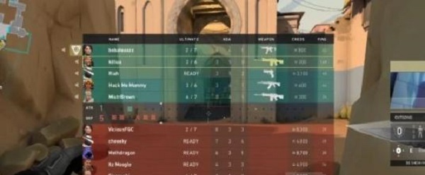 游戲里的TAB面板每回合都會刷新雙方玩家的信息,核心還是關(guān)注經(jīng)濟(jì)情況和大招的充能狀態(tài)。經(jīng)濟(jì)狀況能反映出對手本回合大概率會選購什么類型的武器,同時(shí)也讓己方有了更多決策空間——是選擇攢錢打一場經(jīng)濟(jì)博弈,還是持續(xù)保持火力上的壓制。而掌握敵人的大招充能進(jìn)度,也能清楚對方是否握有關(guān)鍵技能,好比瑞子會不會端著火箭發(fā)射器在防守點(diǎn)位蹲守。