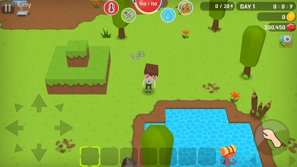 首先要把武器制作出來,點擊左右按鈕就能切換到武器制作界面,用五塊木頭就能打造木劍,這樣夜晚碰到邪惡生物時也能保護自己。除此之外,還可以制作木斧和木鎬,這些都是前期必不可少的工具,有了它們,無論是挖礦還是砍樹的效率都會更高。