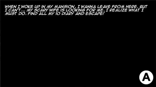 劇情梗概:“我在自己的豪宅里醒來,一心想離開這個地方。可我做不到……我那令人害怕的妻子正在搜尋我,這一刻我終于明白自己必須采取行動——找到我那10本日記,然后逃出去!”點擊A鍵繼續。