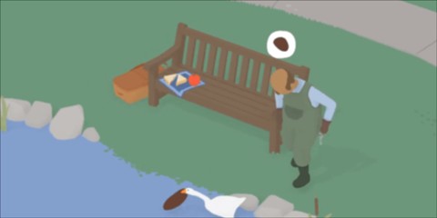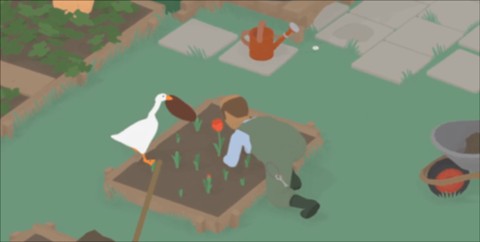 首先,在《鵝作劇》里,玩家可以在園丁的花園中看到一朵花,我們把這朵花從土里拔出來之后放在地上。
