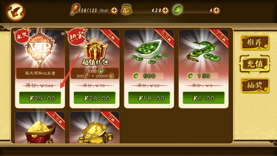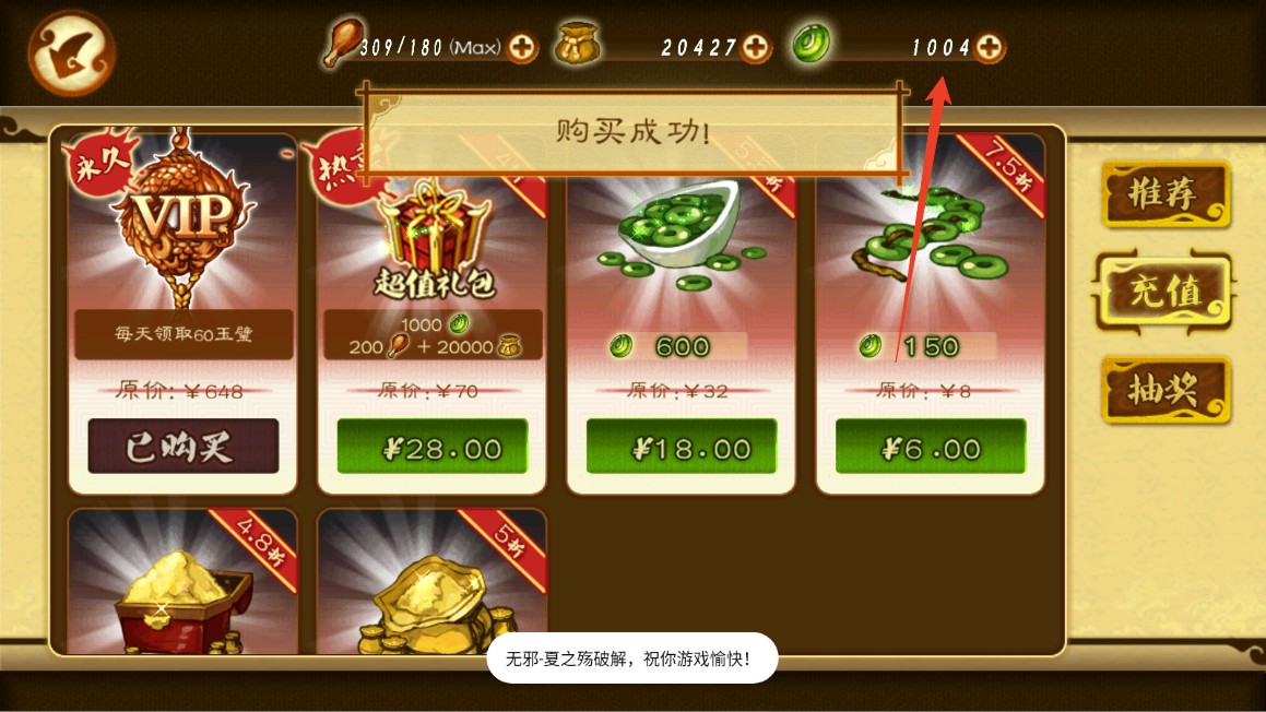 進入充值頁面后,留意頂部顯示的游戲幣余額,接著點擊購買按鈕,根據自己的需求選擇想要購買的項目即可。