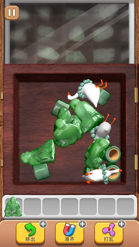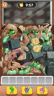 玩家能夠借助道具來獲得幫助,像“移出”這類道具,就可以把3個物體從格子里移出去,放置到暫存欄中。