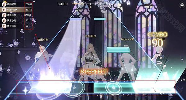 5、游戲玩法以節奏按鍵為主,玩家需要根據舞蹈節奏,看準時機點擊掉落的按鍵音符,控制角色跳舞,點擊越多,得分越高,玩家可以在左上角查看分數。
