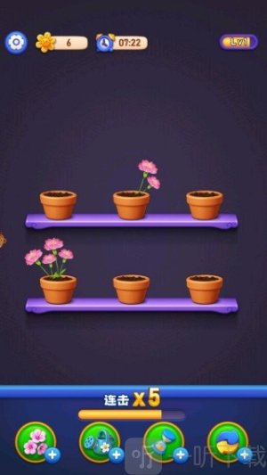 這可不是普通的三消游戲。它采用花瓶收納的形式來消除花朵,花朵不能隨意調換位置,因此得提前規(guī)劃好擺放策略。