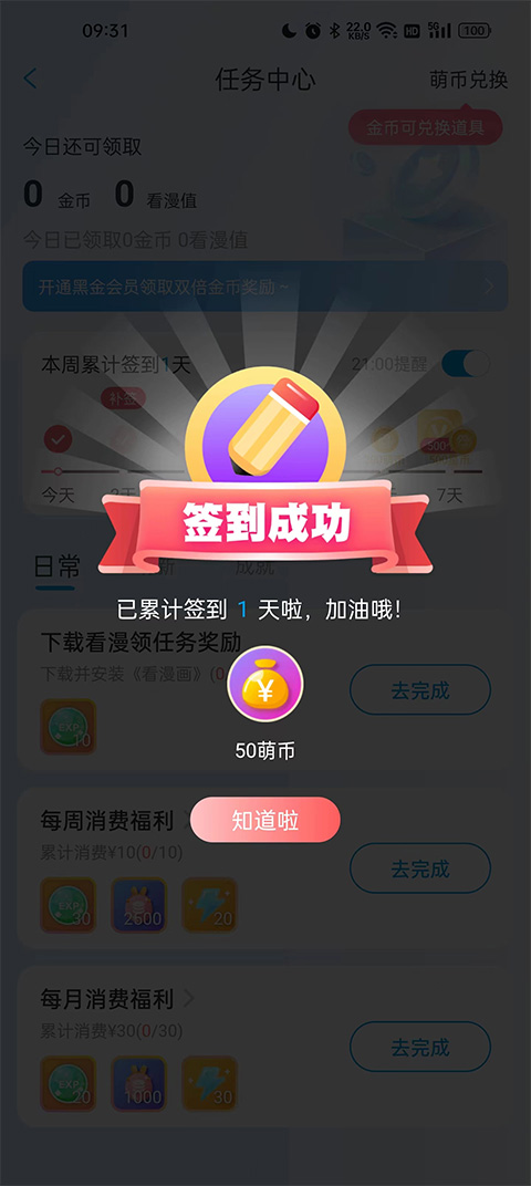 接下來會進入任務中心頁面,完成對應的任務就能得到萌幣獎勵。