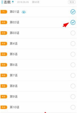 直接點擊漫畫,進入詳情頁面后,在頁面下方能看到漫畫的話數列表,像第01話的右側就有一個圖標,點擊該圖標即可完成操作。