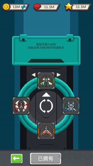 利用戰(zhàn)機制造系統(tǒng)打造新戰(zhàn)機,當收集到足夠的核心圖紙與稀有材料時,可在制造界面合成新機型,新機型擁有獨特的初始形態(tài)與基礎屬性,如 “閃電戰(zhàn)機” 初始形態(tài)彈道為穿透激光,適合應對密集敵人,拓展戰(zhàn)斗策略。
