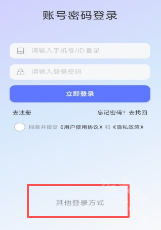 點擊其他登錄方式后,可通過賬號密碼進行登錄(首次登錄時會自動注冊為新賬號)