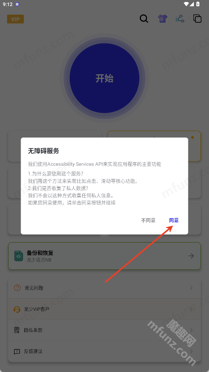 打開龍少連點器點擊同意