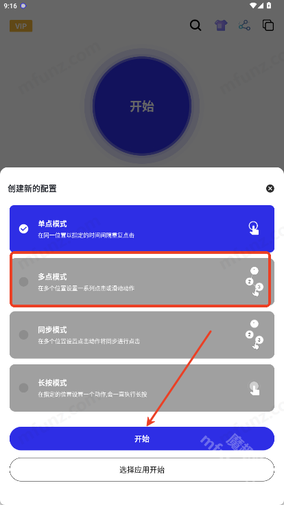 選擇點擊模式并點擊開始