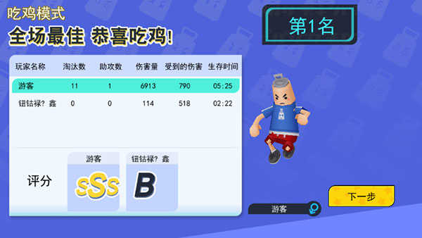 完成游戲之后我們可以看到自己的傷害值和生存時間