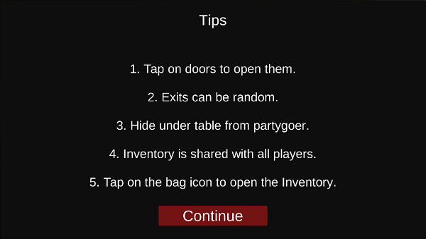接著會有一段游戲小提示,點擊“Continue”即可成功創建房間;