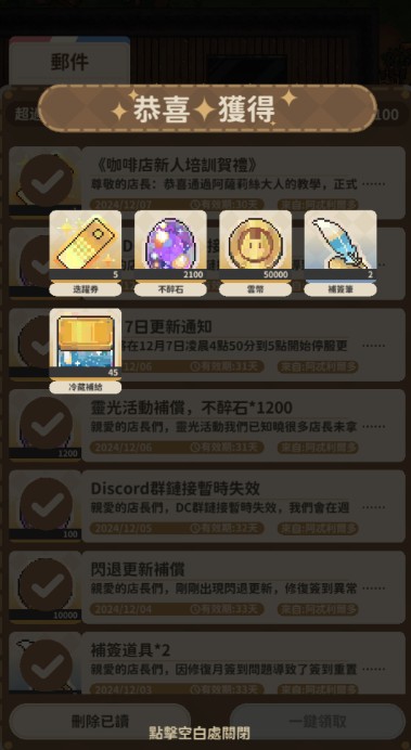 到這一步就可以點開郵件領取大量資源開始快樂抽卡了。
