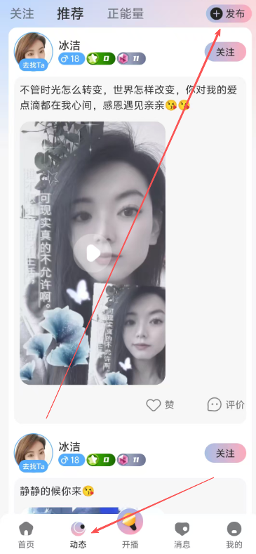 在動態(tài)頁面中,點擊右上角的發(fā)布。