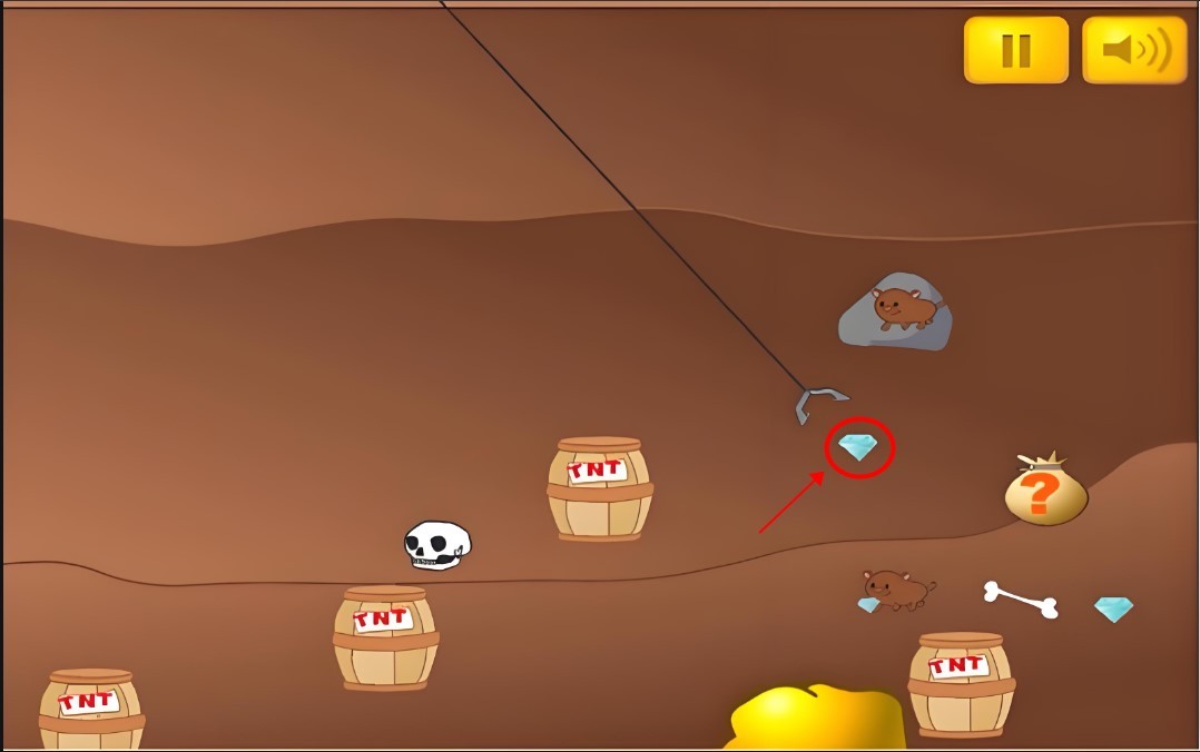 通過控制礦工的鉤子,盡可能多地挖掘黃金與其他礦石
