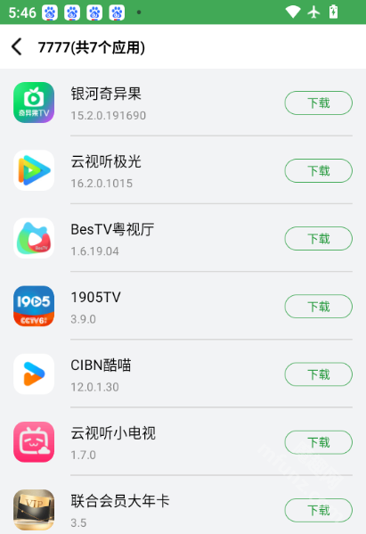 影視點播組合碼 7777,包含銀河奇藝果、云視聽極光、bestv粵視廳、1905tv、cnbn酷喵、聽視聽小電視及聯合會員年卡。