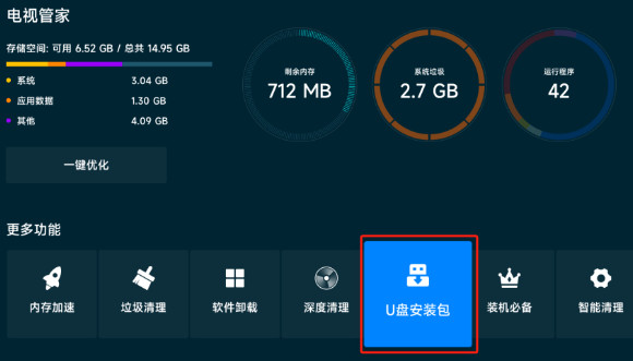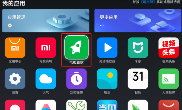將U盤插到小米盒子上。選擇【電視管家】。