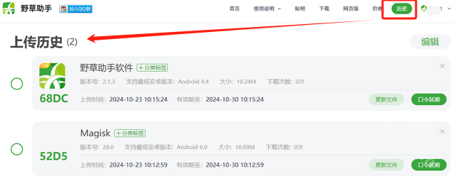 點擊歷史,即可查看上傳歷史。