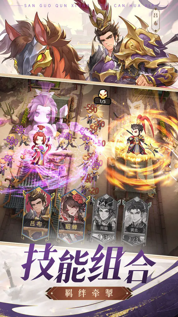 玩家可以招募各路知名的古代角色,這些角色各懷獨(dú)特技能,助力玩家打造出實(shí)力強(qiáng)勁的陣容。