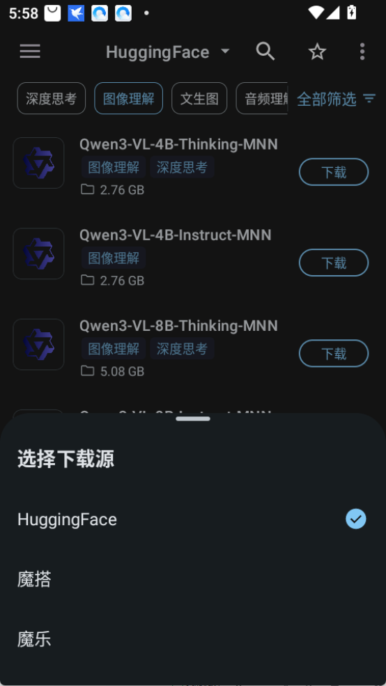 根據需求選擇AI模型MNN Chat軟件