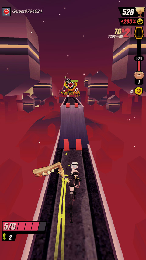 別躲開小丑,朝著他的方向滑動屏幕(側滑或者上滑)就能擊敗他,不然的話會被小丑攻擊,你的生命值也會減少。