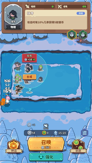 游戲里加入了隨機合成機制,這是一種富有創意的玩法設計:玩家能借助合成操作獲取更厲害的裝備與英雄,以此增添游戲的隨機變數和挑戰難度。