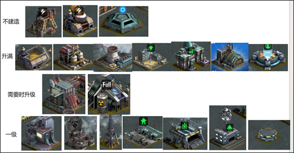 資源型建筑主要有金屬庫、石油庫、鈾庫和發電站。其中金屬庫和石油庫建議只要能升級就盡量升級,鈾庫和發電站則按需升級即可。前期建造兩座金屬庫、石油庫和發電站就夠用了。另外,冶煉廠和油井不建議升級,更不建議建造!