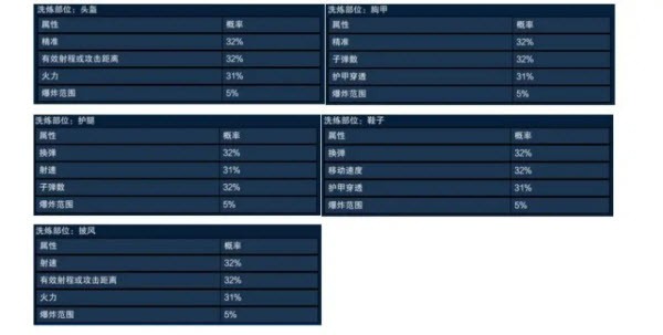 第二階段:繼續(xù)花費五百金幣,若屬性刷滿就保留。進入第二階段后,需明確要刷取的屬性方向,此處以步槍屬性為例,結(jié)合前文的屬性示意圖可知,披風(fēng)能夠刷出步槍射速、步槍火力以及步槍有效射程這幾項屬性。