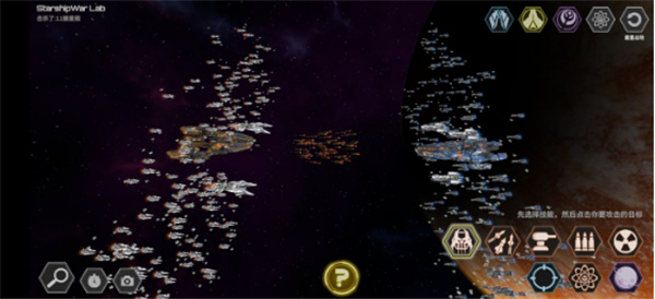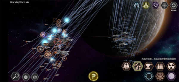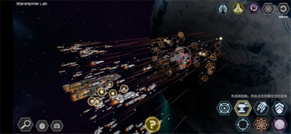 點擊你想使用的技能,接著點擊艦隊中的任意一艘艦船,即可發起攻擊。你點擊的那支艦隊就是被攻擊的目標艦隊。