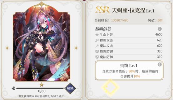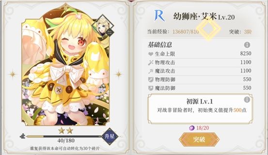 游戲初期系統會贈送兩張R級本命卡,為了讓隊伍里的3個角色都能盡快配上本命卡、避免“裸奔”狀態,建議大家先解鎖一張SR本命卡(具體挑選方法下文會說明),之后再考慮兌換SSR本命卡,不推薦一開始就直接去兌換SSR本命卡。