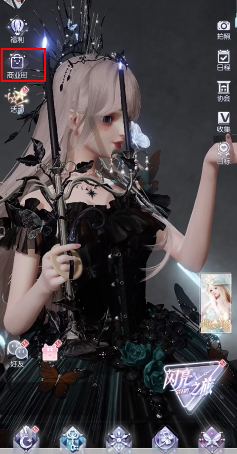 打開游戲后,界面顯示如圖所示,你可以點擊左側的商業街,也可以點擊上方鉆石旁邊的加號按鈕。