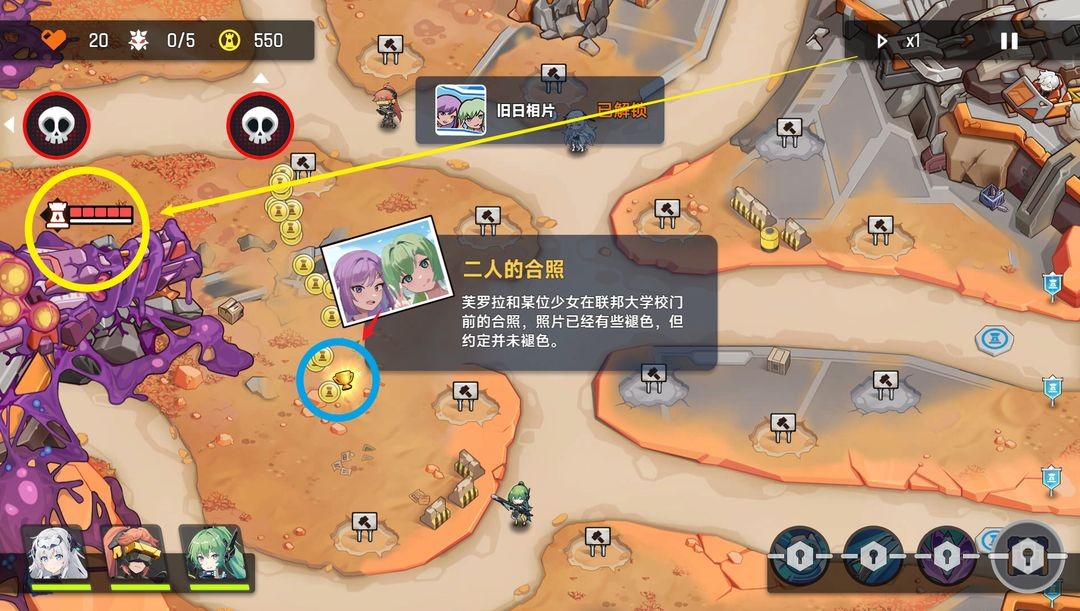 1-5:第三波結束后點擊左上角的雕像,雕像出現后協助作戰片刻。