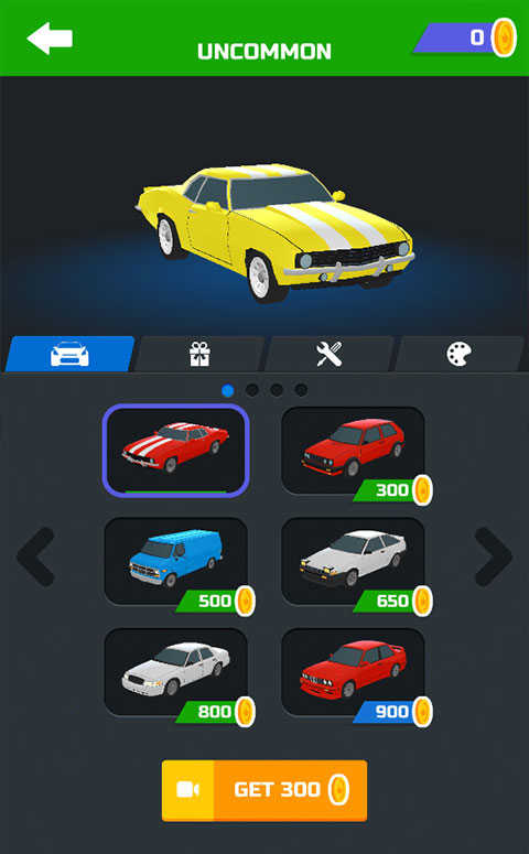 挑選自己喜歡的汽車,用金幣購買更多裝飾和涂裝,打造專屬的個性化愛車。