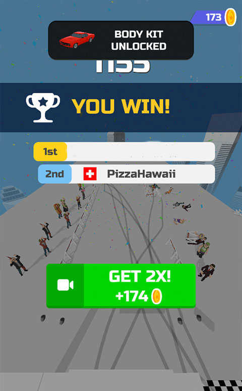 賽道上散落著許多金幣,收集這些金幣能為之后解鎖新車輛積累資金。