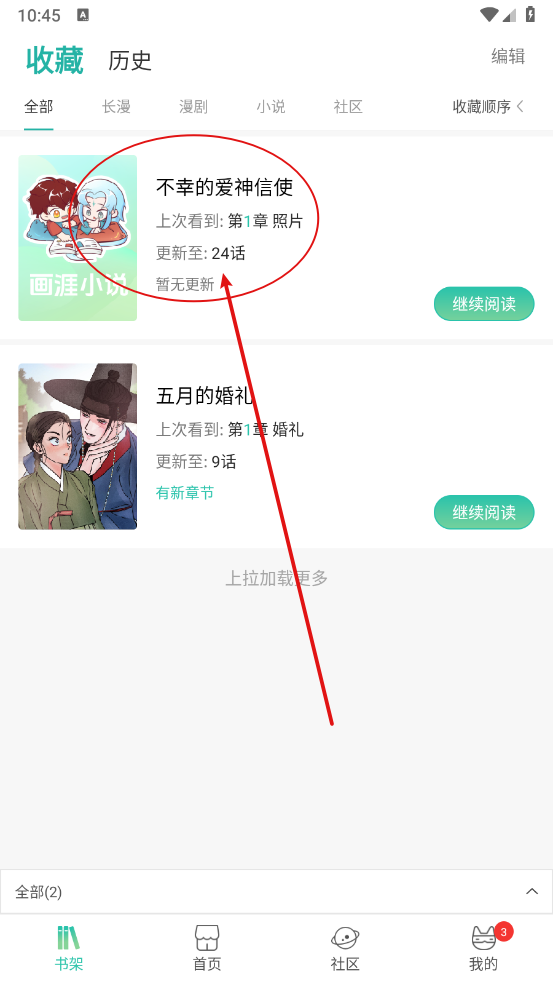 回到“書架”板塊,就能看到你收藏的目標漫畫了。