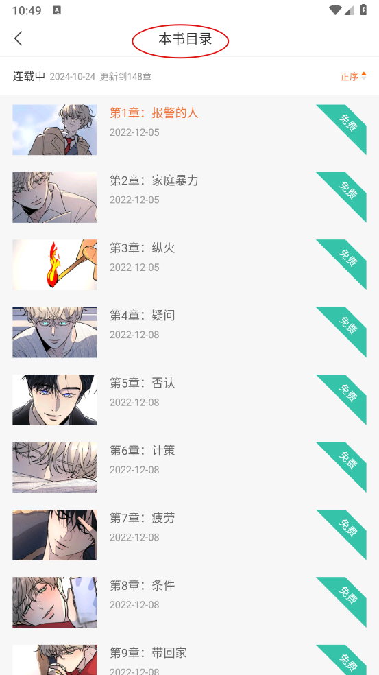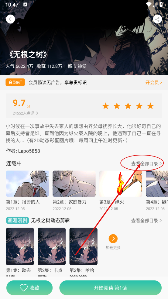 進入喜歡的漫畫詳情頁,點擊"查看全部目錄"。